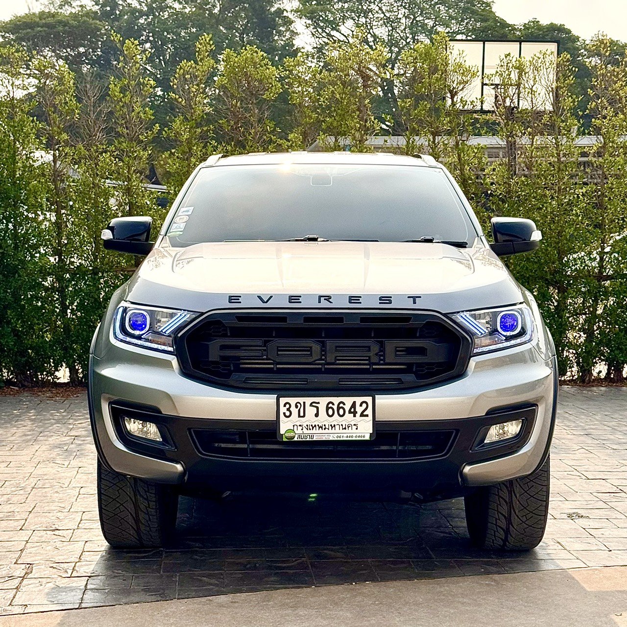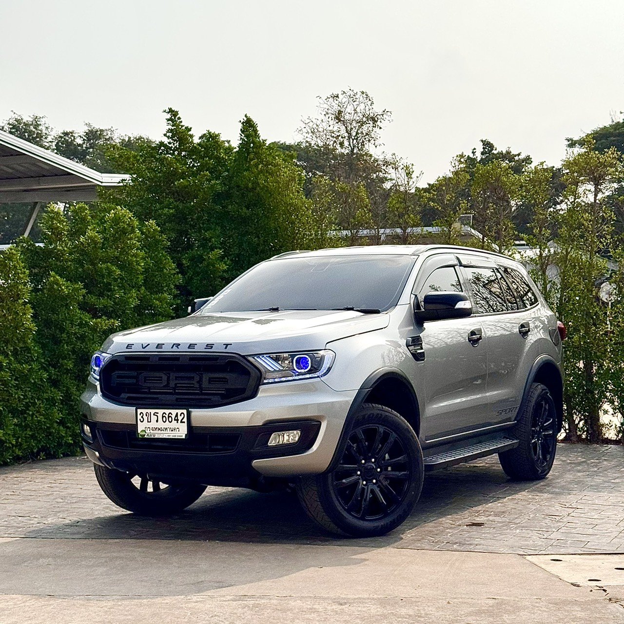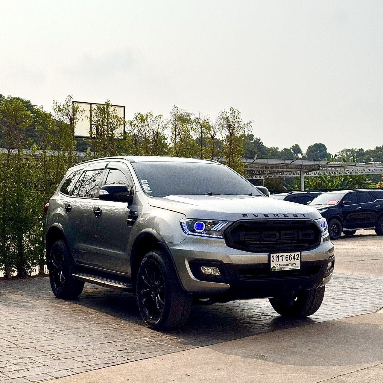 ชุดแต่ง Titanium Sport: สวยดุจากโรงงานด้วยกระจังหน้า ล้ออัลลอย และตัวอักษร Everest สีดำ ตัดกับตัวรถสีเทาที่ดูหรูหราและดูแลรักษาง่าย