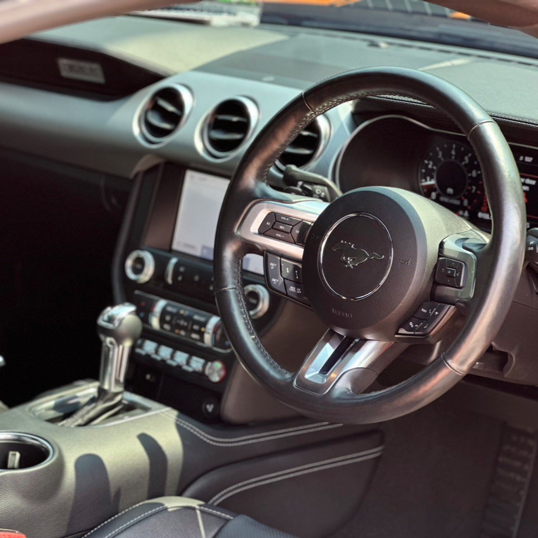 ทำความรู้จักรุ่นย่อย (คันนี้อยู่ตรงไหนในตระกูล?): Mustang ในไทยจะมีหลักๆ คือรุ่น 2.3 EcoBoost และ 5.0 V8 โดย คันนี้คือ 2.3 EcoBoost ที่มาพร้อม Performance Pack ซึ่งอัปเกรดระบบเบรก ช่วงล่าง และการระบายความร้อนให้ดีกว่ารุ่นธรรมดา ลำดับคือ 2.3 (Std) > 2.3 (Performance Pack) > 5.0 V8 ซึ่งคันนี้เป็นรุ่นที่ตอบโจทย์การใช้งานจริงในเมืองไทยมากที่สุด ทั้งเรื่องภาษีและการขับขี่ครับ