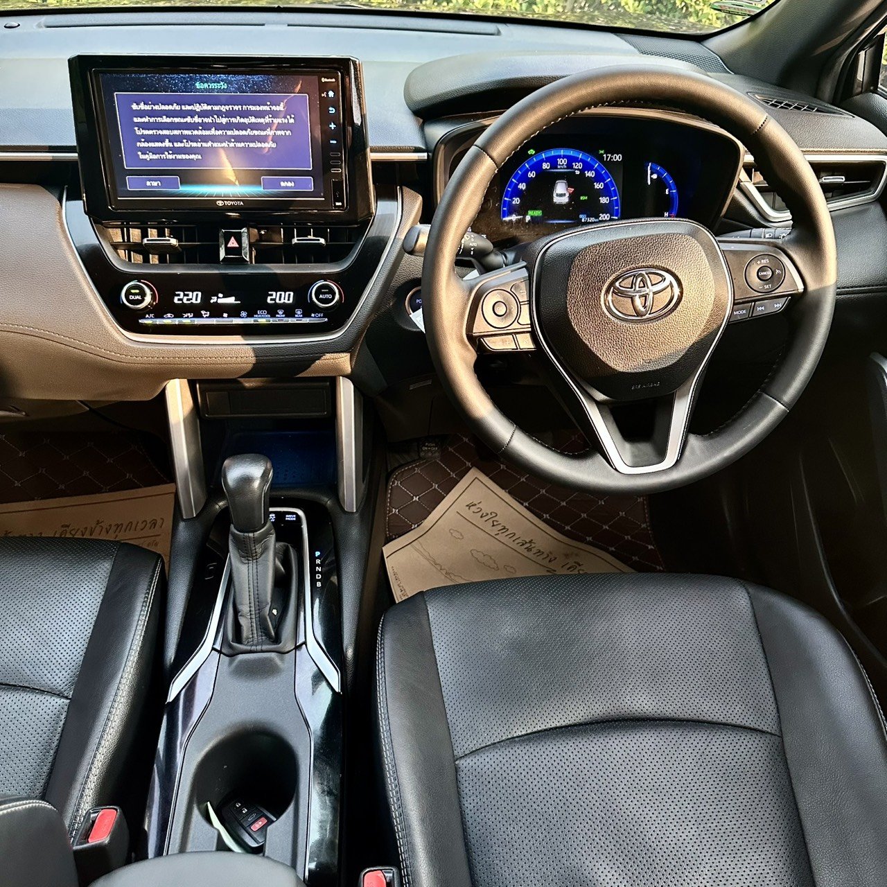 ทำความรู้จักรุ่นย่อย (คันนี้อยู่ตรงไหนในตระกูล?): ในไลน์อัป Hybrid ของ Corolla Cross จะแบ่งเป็นรุ่น Smart, Premium และ Premium Luxury โดย รุ่น Premium คือรุ่นรองท็อปที่คุ้มค่าที่สุด ครับ เพราะได้ออปชั่นสำคัญมาครบเหมือนตัวท็อป เช่น ฝาท้ายไฟฟ้าพร้อมเซนเซอร์เท้า (Kick Activated), ระบบความปลอดภัย Toyota Safety Sense, และกล้องมองภาพขณะถอยหลัง ในขณะที่ราคามือสองเข้าถึงง่ายกว่ารุ่นท็อปพอสมควรครับ